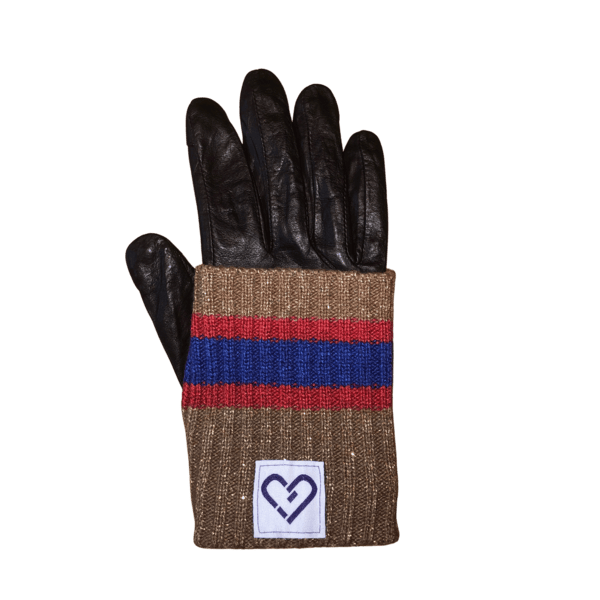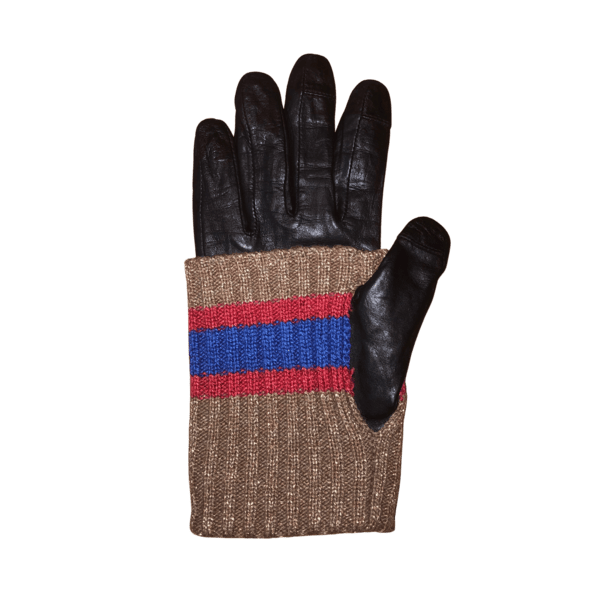 Retro glitterhandschoen. Deels gebreid, deels leer