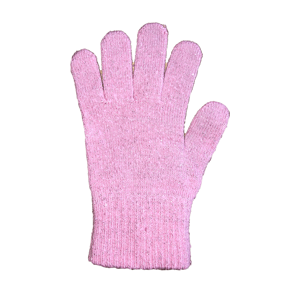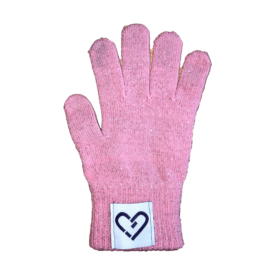 Deze glitterende, roze kinderhandschoen gaat vrolijk de herfst tegemoet